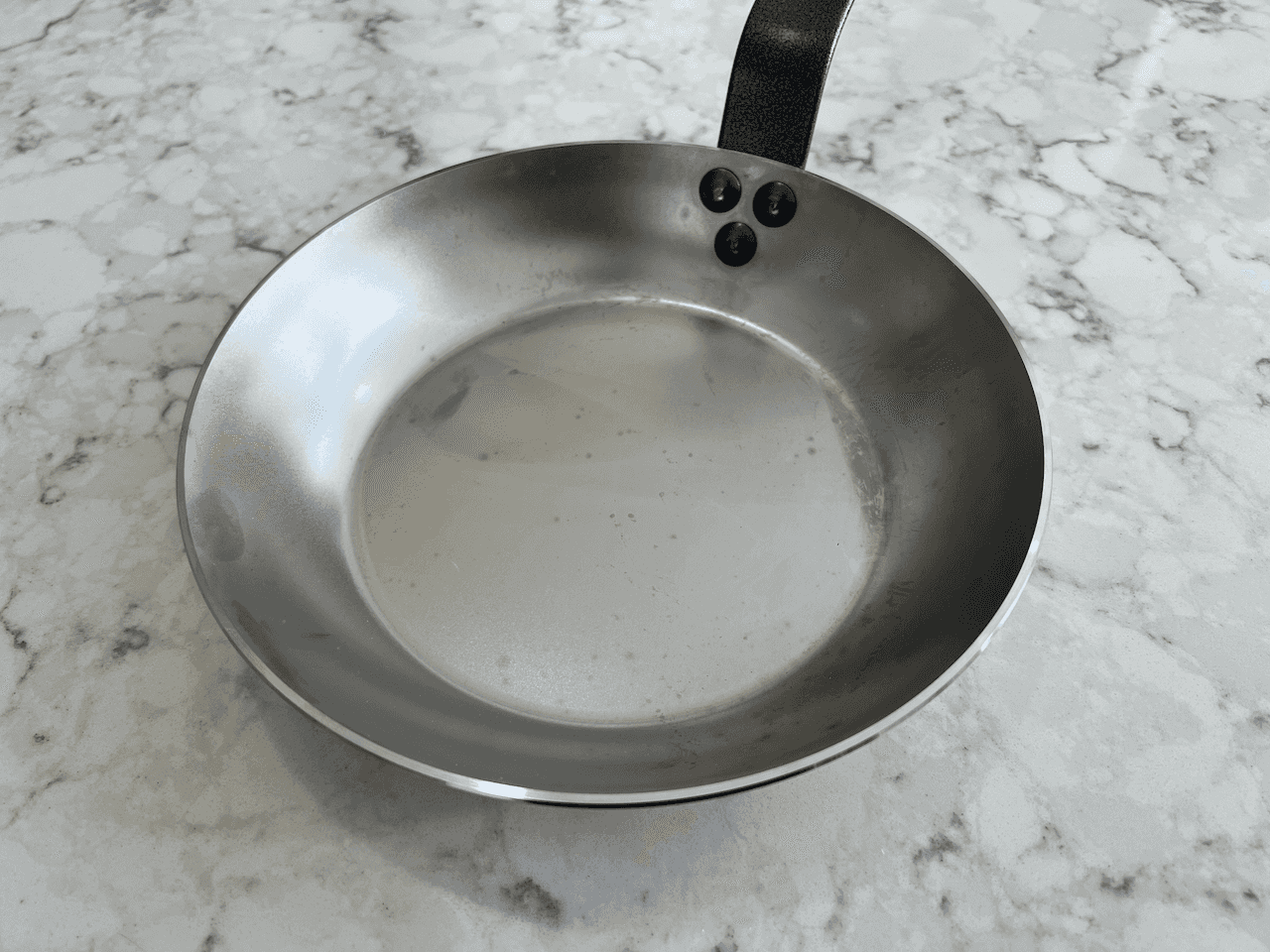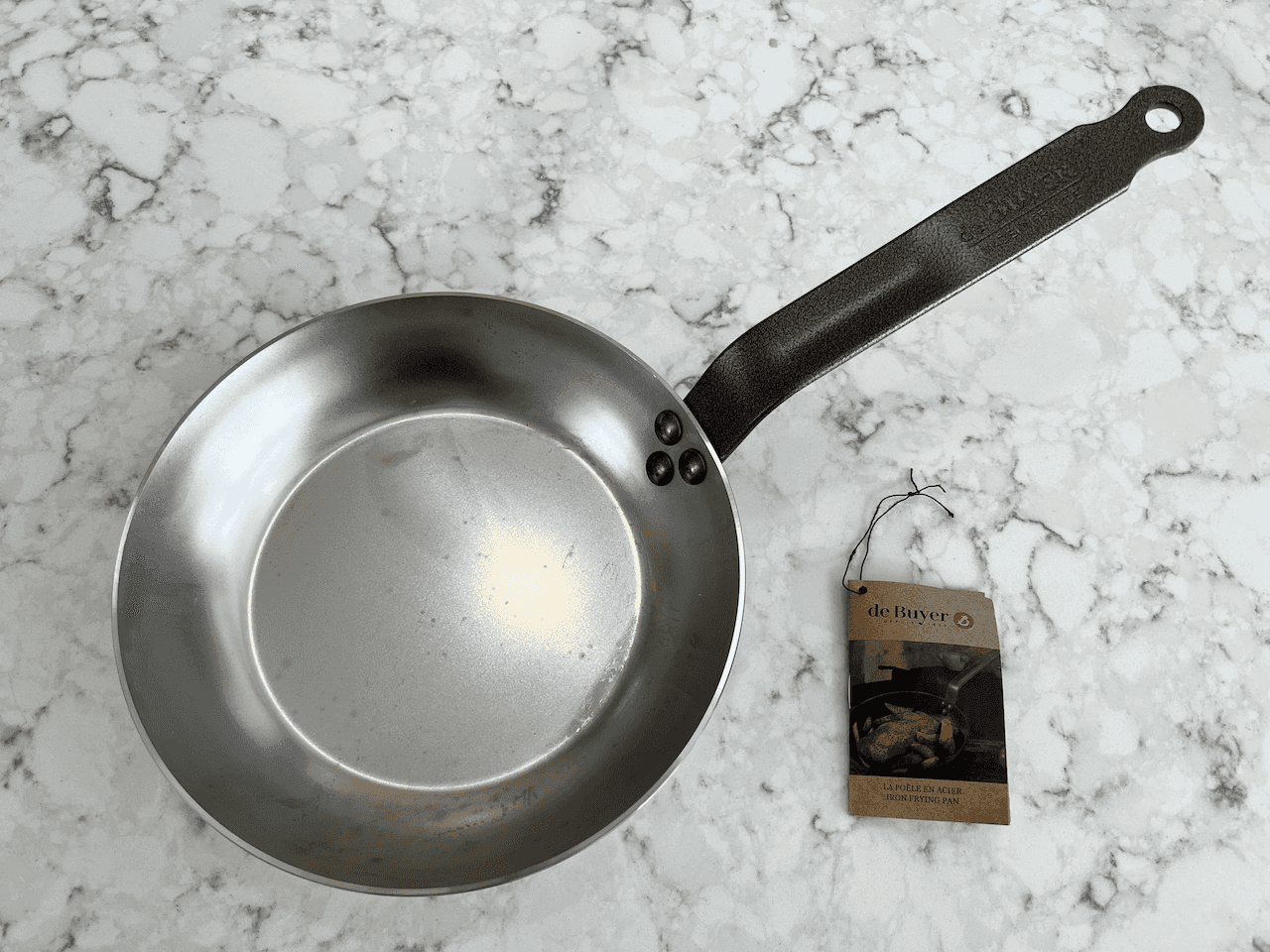 While I was hoping for a metal handle that could withstand oven seasoning, I am okay with this model having a coated handle because A) the price is great and B) it has the iconic De Buyer look. I ended up doing just fine seasoning this pan using a stovetop method I detail here.